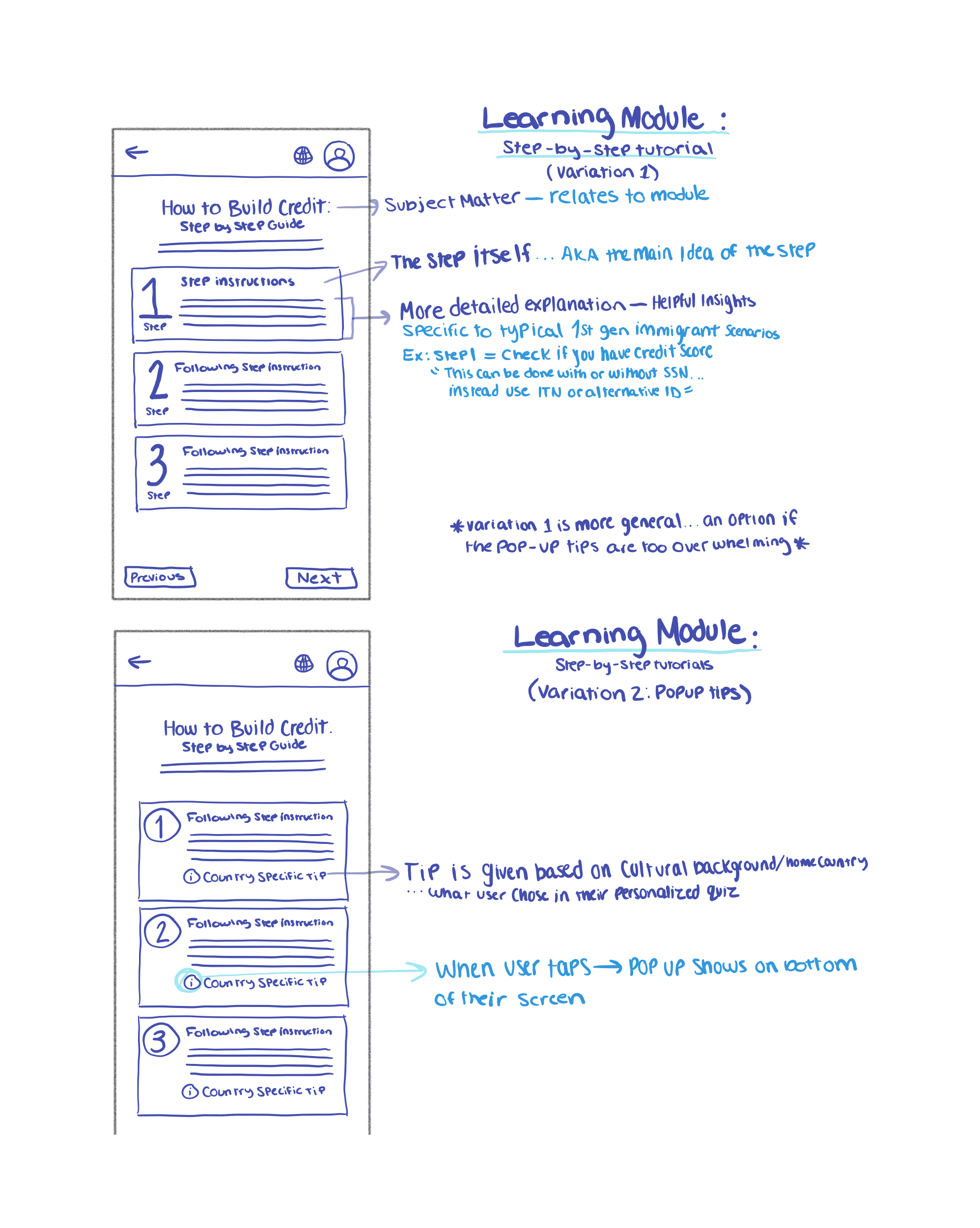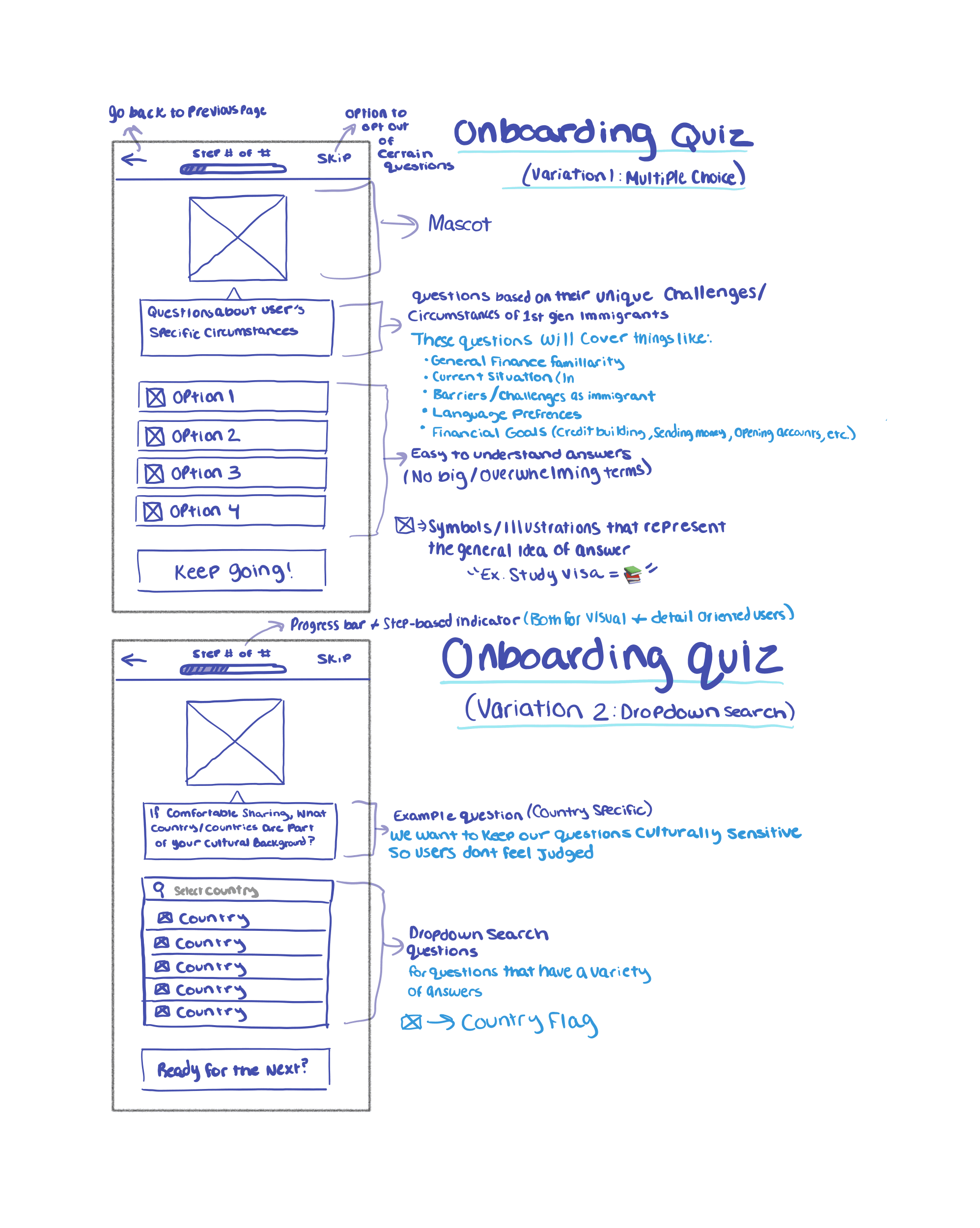 Moving quickly to polished screens felt impactful, but next time I would let the onboarding stay in low and mid-fidelity longer, test more variations, and tune product content around what actually supports first-generation immigrants.