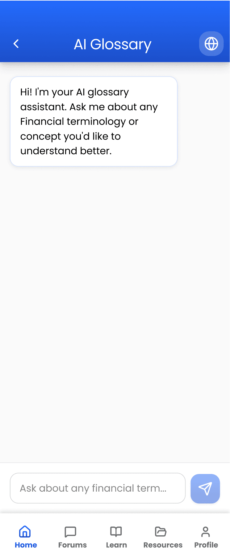 As users move through their path, an AI glossary, language toggles, and cultural tips appear in tandem each lesson, turning confusing terms into plain language and connecting them to familiar context right when they’re needed.